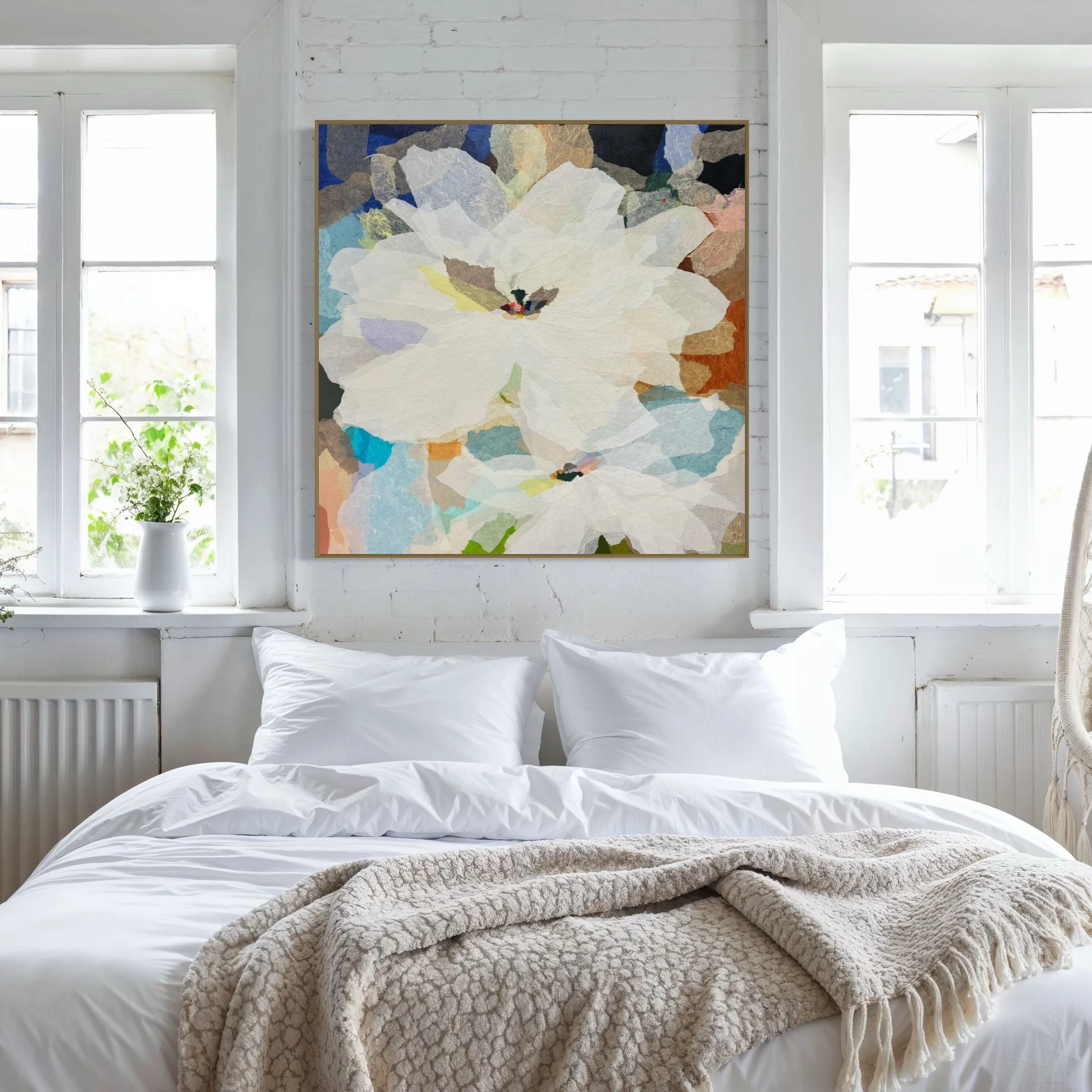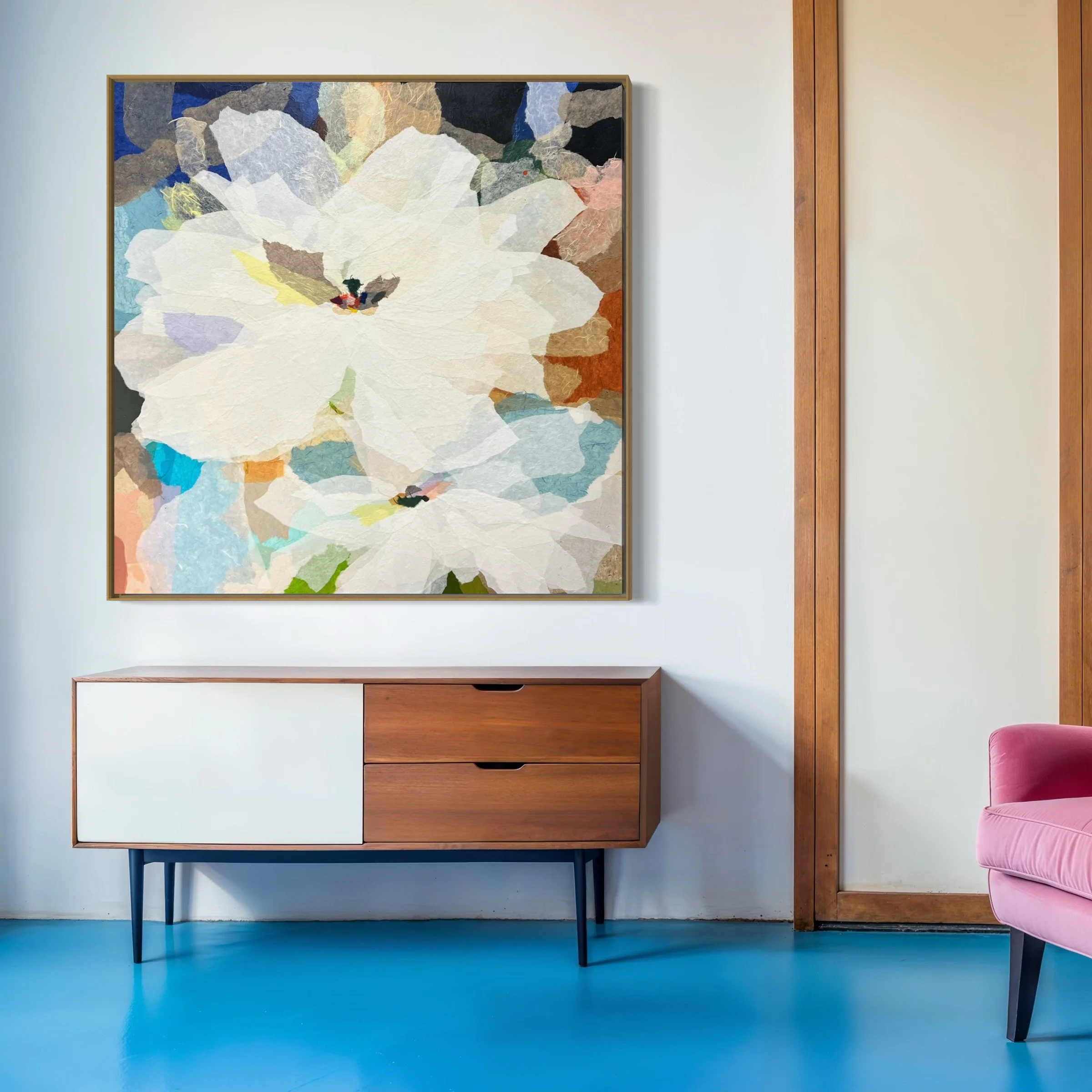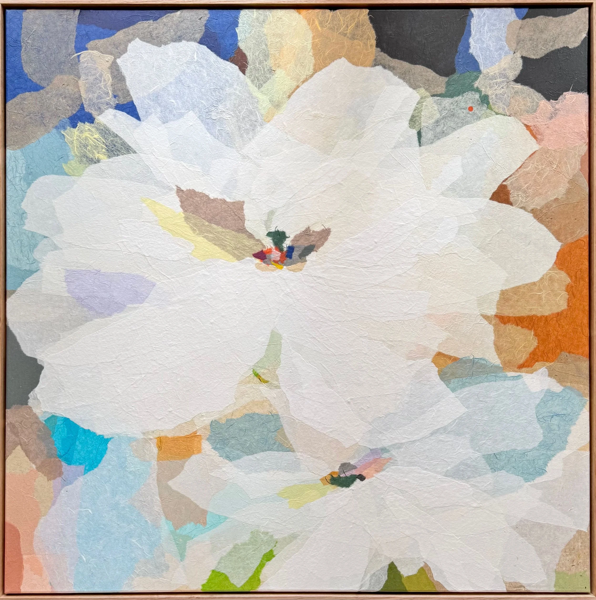 Hanji (Korean traditional paper) and mixed media on canvas, finished with varnish