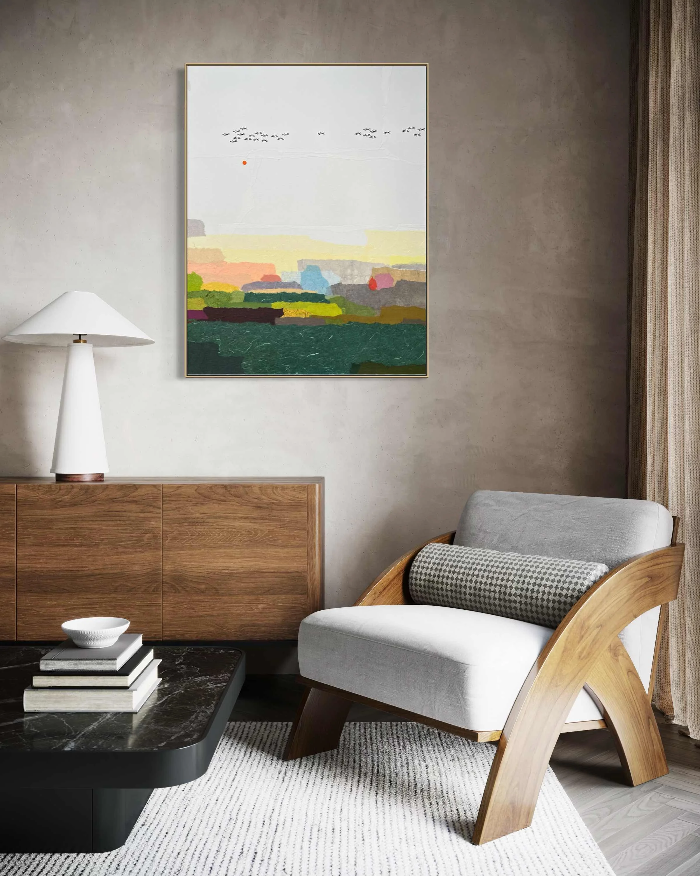 “Returning Echoes” is inspired by the quiet presence of the Blue Mountains. The changing light, distant ridges, and shifting air create a landscape that feels calm but always moving. The Blue Mountains gave me new life and a fresh perspective. It is where I found a forever home and a place to be. It is also where my art truly began to shine. This place holds deep personal meaning, and each painting carries that quiet gratitude. In these works, I focus on layers, soft edges, and gentle transitions. The mountains appear and fade, like an echo that returns slightly changed. I am drawn to those still moments — when light moves across the hills, when the valley feels peaceful, and when distance brings clarity. Rather than painting one exact view, I try to capture a feeling. Standing before a wide horizon can bring reflection, memory, and a quiet return to ourselves.