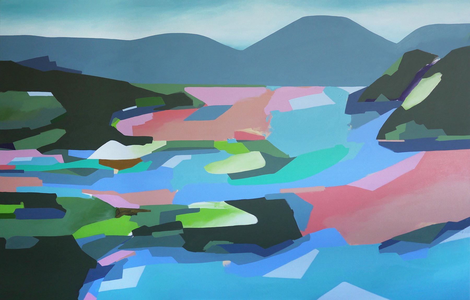 Visually her works represent colourful, abstract landscapes and dreamscapes inspired by nature and urban environment.