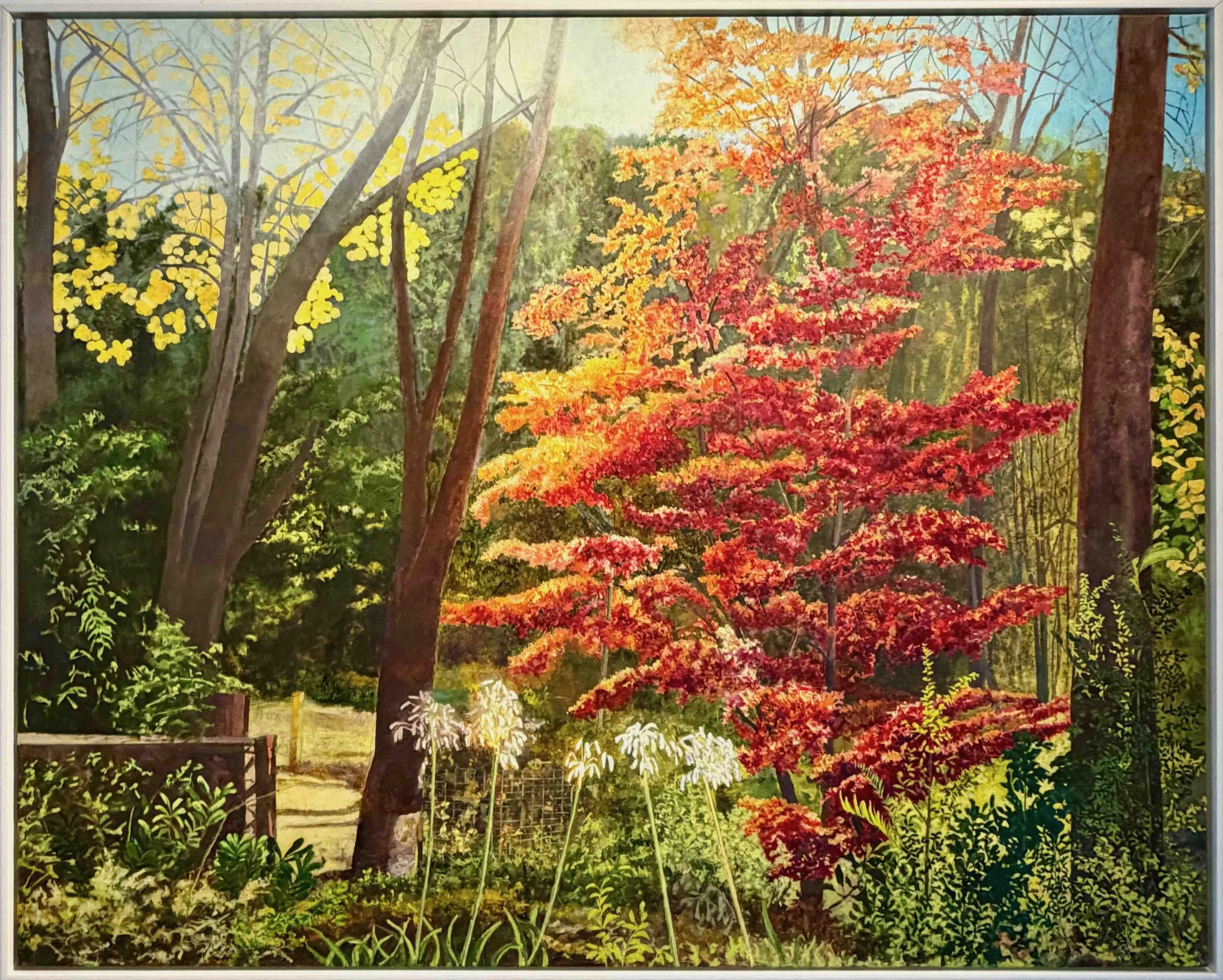 My oeuvre is based on the close searching observation of both the object and of the natural world, with a particular interest in organised spaces, gardens and pattern. The images are determined by the locations I choose, the still lives I construct and about the observation of the interplay of light. These issues are demonstrated by my preoccupation with the relationship of light between the interior to the exterior and by witnessing the workings of and nature through sequential studies in organised and manicured spaces. These concerns provide the subject matter that enables me to explore and examine the formal issues necessary to construct and manipulate a particular image. This process allows me to both address and to pay rigorous attention to order, composition, pattern, pictorial space and to the meticulous rendering of detail.