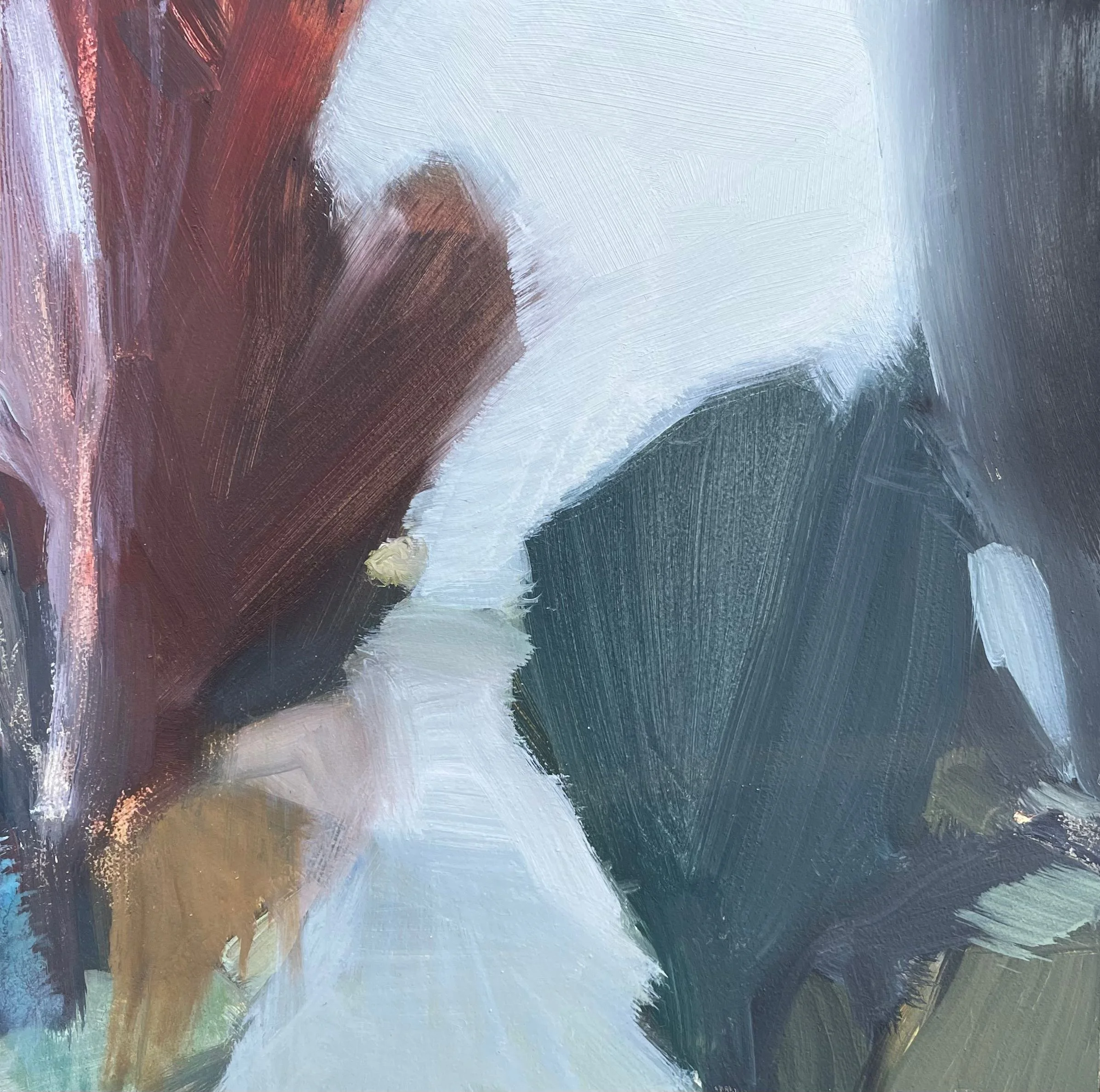 I have changed my practice slightly, working in the studio, off small plein air studies or drawings from remembered landscapes, interpreting them and turning them into semi abstracts, using the shapes and letting each painting find its own way. Something that I have been experimenting with. Working up close so that the marks and shapes are just that. Until I step back and then the shapes become a composition.