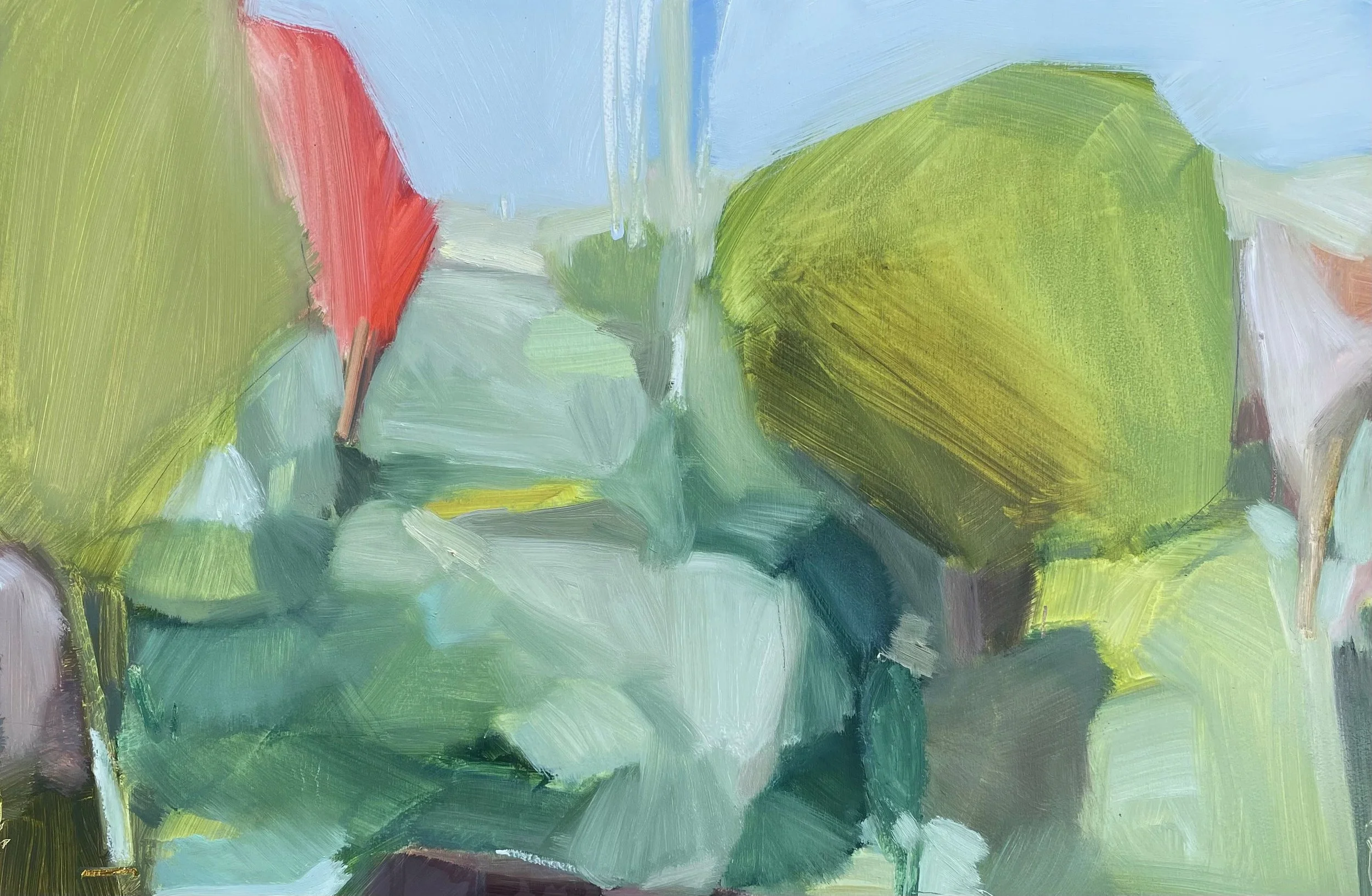I have changed my practice slightly, working in the studio, off small plein air studies or drawings from remembered landscapes, interpreting them and turning them into semi abstracts, using the shapes and letting each painting find its own way. Something that I have been experimenting with. Working up close so that the marks and shapes are just that. Until I step back and then the shapes become a composition.