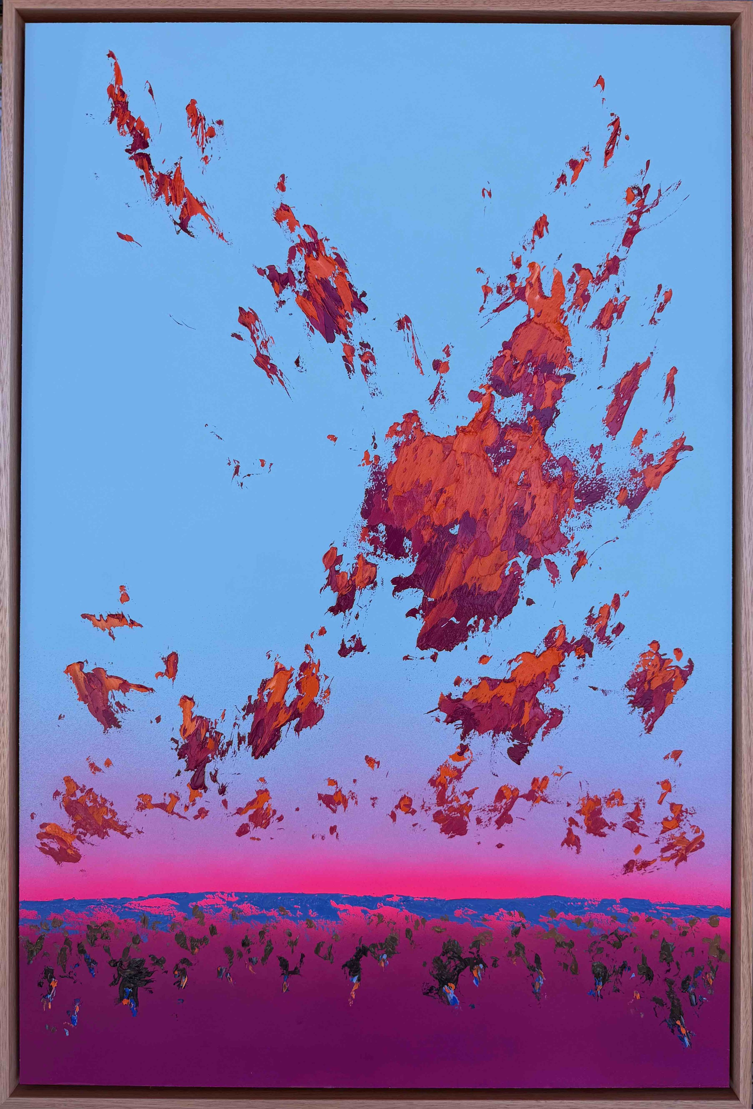 I currently spend most of my time exploring dirt roads in rural NSW, where painting from life has played a critical role in shaping my current style and approach to painting. I have recently started reworking paintings in my studio that were painted en plein air to help give me more time to think about the work and inject the experience into the paintings. Using thick brush marks and layers of paint enables me to capture the tough Australian terrain. I want viewers to be able to see and feel the terrain on the surface of my paintings and through my work take them on my adventures and journey into the Australian landscape.