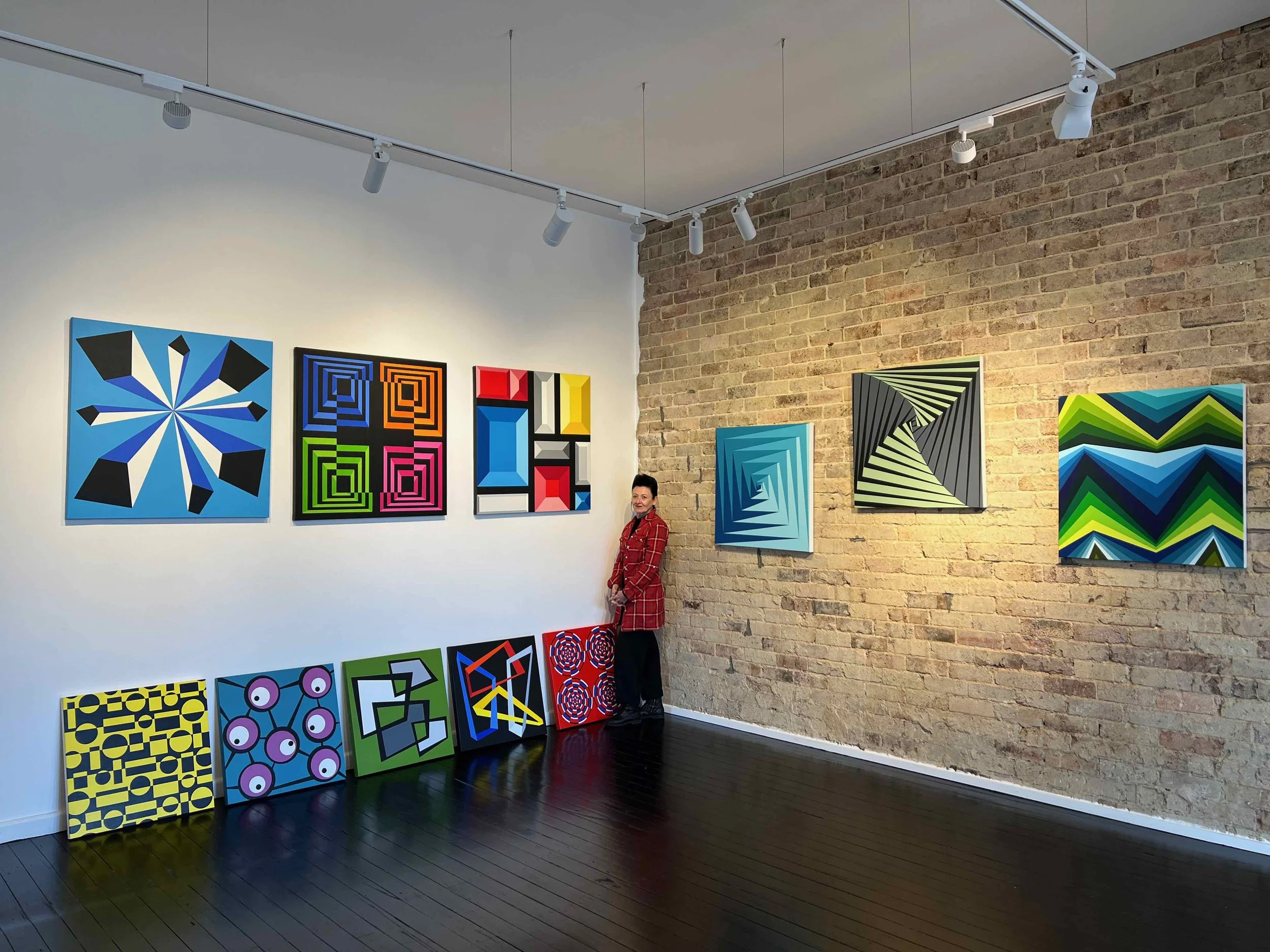 This is an area I have been exploring in my practice since the 1970's, using traditional techniques and equipment from my background in drafting to create hard edged geometric paintings and modernist style prints that explore tricks of the eye.