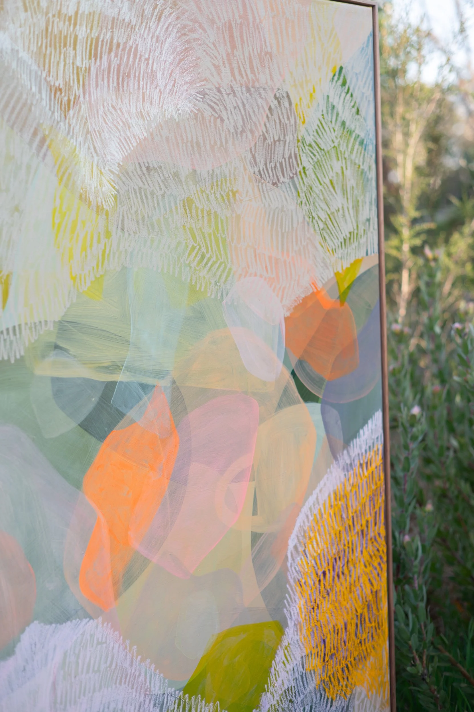 With a background in Interior Architecture, exploring the way our environments affect our bodies and minds is of strong interest to her and by creating pieces featuring imagery of oversized botanicals, she hopes to transport people to a place between a playground and a meditative space.