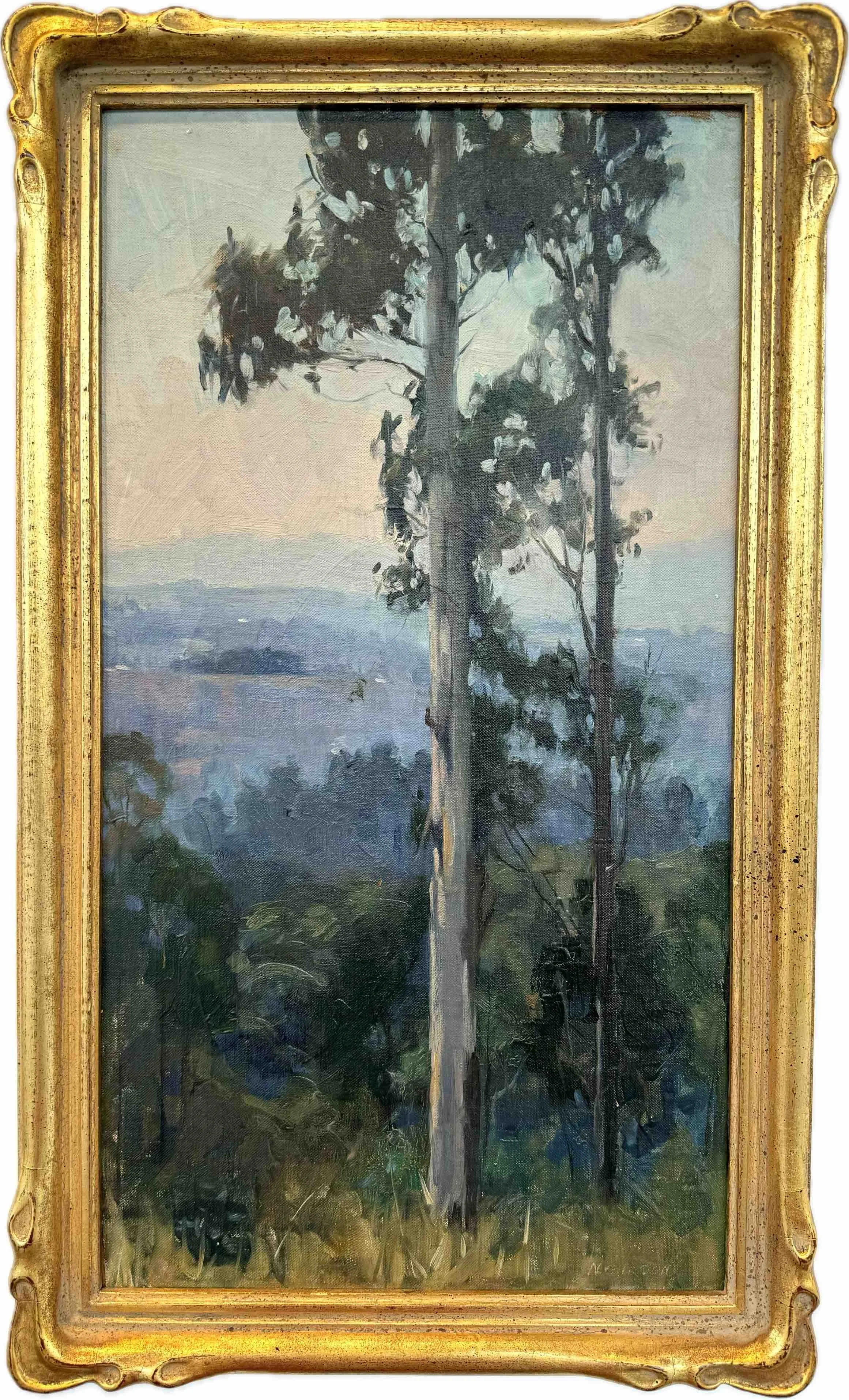 Exhibited 1923-1954, remained a member of the Melbourne Society of Women Painters and Sculptors until 1974, artist, studied National Gallery School 1901-1908. One of the thoroughly professional generation of women artists, who emerged from the National Gallery School in the first decade of the twentieth century, Norah Gurdon belonged to a close professional and friendship network that these enterprising women artists, including Jessie TRAILL, Dora WILSON and Vida Lahey, formed. She spent the First World War nursing in France. Many of her paintings were executed at her home at Kalorama and portray the upper Yarra Valley and the vista from the upper reaches of the Dandenongs. Rather than the harsh "blue and gold" landscapes of 1920s pastoralism, she often favoured the blues and greys of distant hills and misty effects in the valleys. Many female artists and colleagues spent time staying in her home and painting in the district. Dorothy MOORE and Mabel PYE, were amongst the artists who worked at Norah's house.' Dora SERLE and her family also spent holidays at Kalorama with Norah.