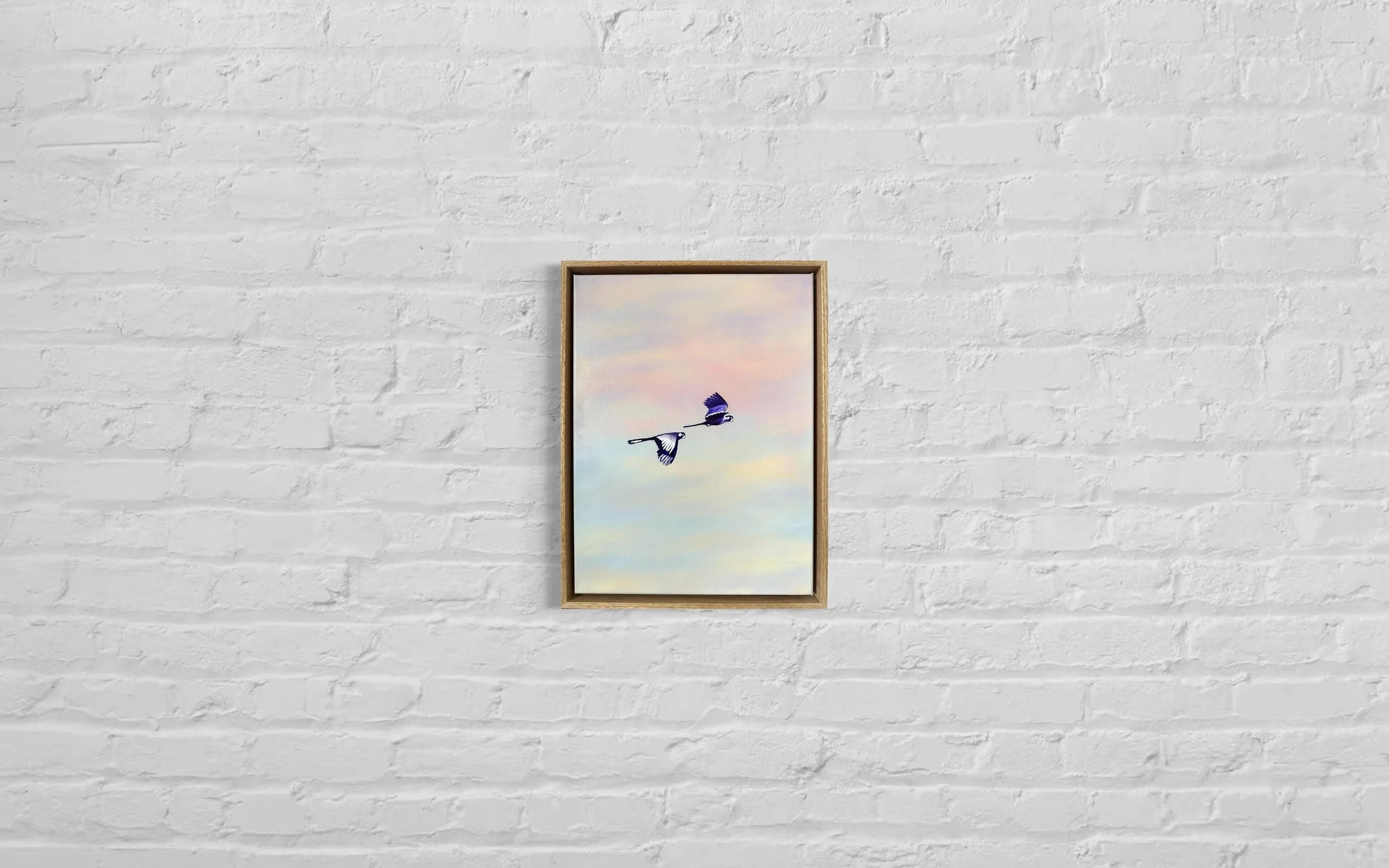 “My Cloud Sky With Black Cockatoo series of paintings have evolved from earlier Cloud Sky with bird paintings. In this most recent body of work, I’ve decided to focus in more on the majestic yellow tailed black cockatoos, making them the focal point in the otherwise ethereal sky. The background clouds are softly focused, almost appearing air brushed - although they are hand painted with layers of acrylic gesso glazed with oil paint.