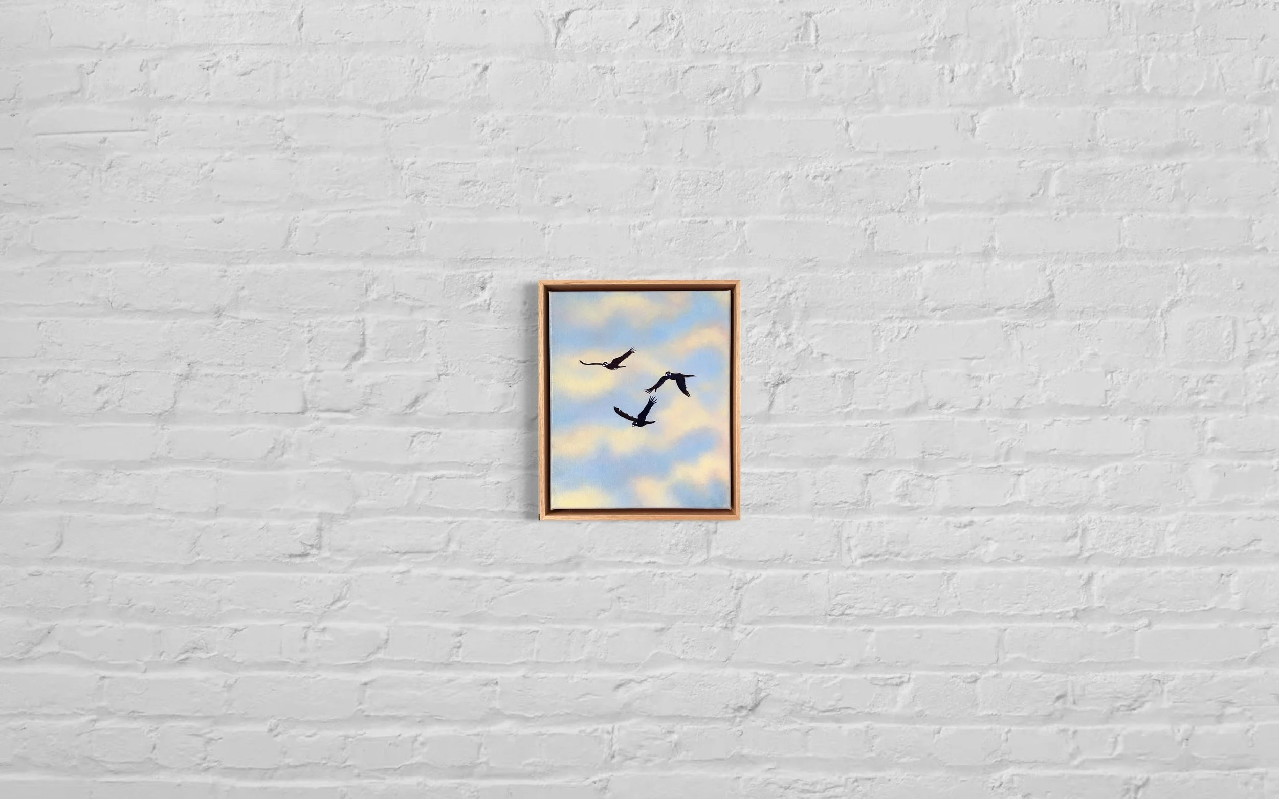 “My Cloud Sky With Black Cockatoo series of paintings have evolved from earlier Cloud Sky with bird paintings. In this most recent body of work, I’ve decided to focus in more on the majestic yellow tailed black cockatoos, making them the focal point in the otherwise ethereal sky. The background clouds are softly focused, almost appearing air brushed - although they are hand painted with layers of acrylic gesso glazed with oil paint.
