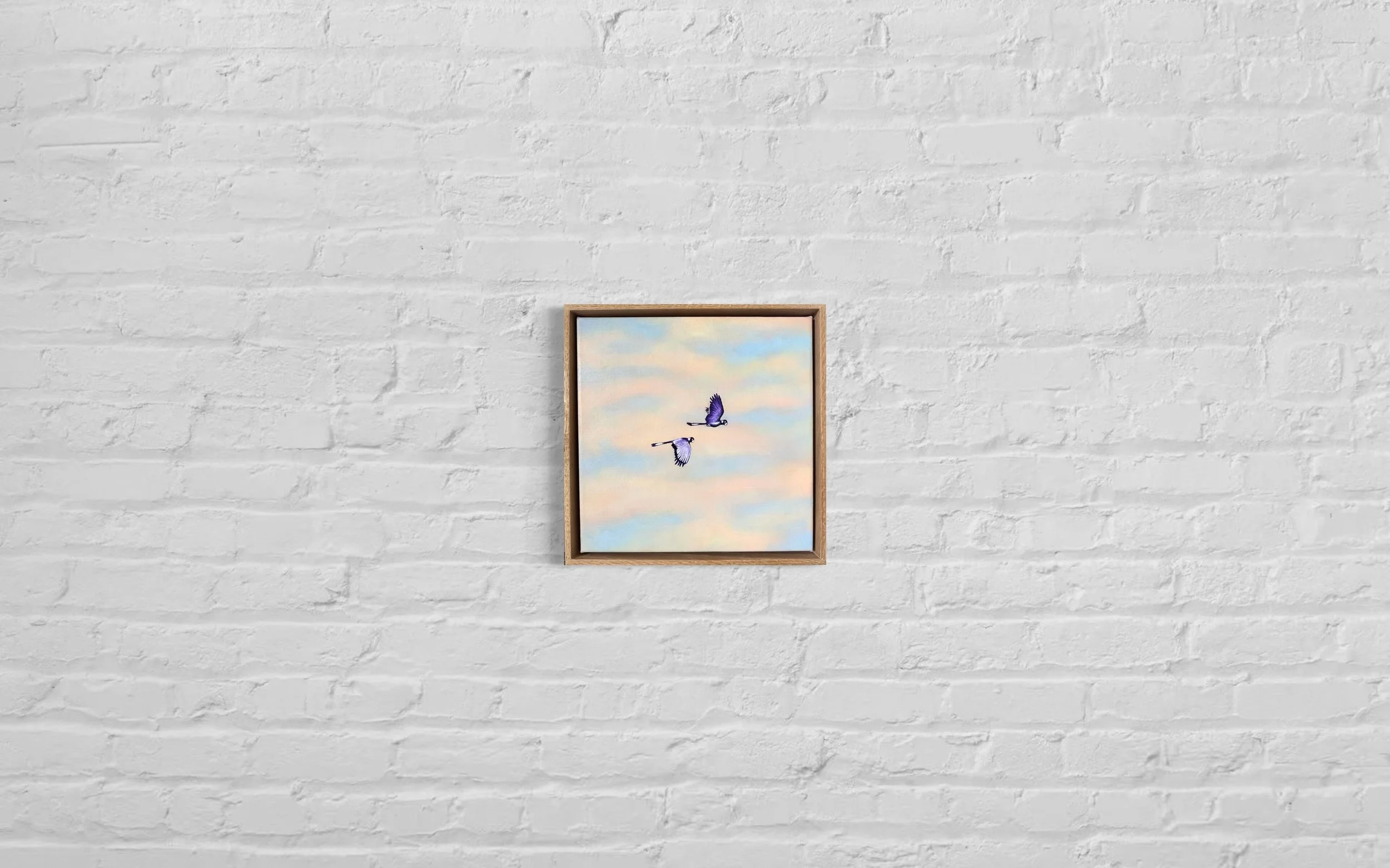 “My Cloud Sky With Black Cockatoo series of paintings have evolved from earlier Cloud Sky with bird paintings. In this most recent body of work, I’ve decided to focus in more on the majestic yellow tailed black cockatoos, making them the focal point in the otherwise ethereal sky. The background clouds are softly focused, almost appearing air brushed - although they are hand painted with layers of acrylic gesso glazed with oil paint.