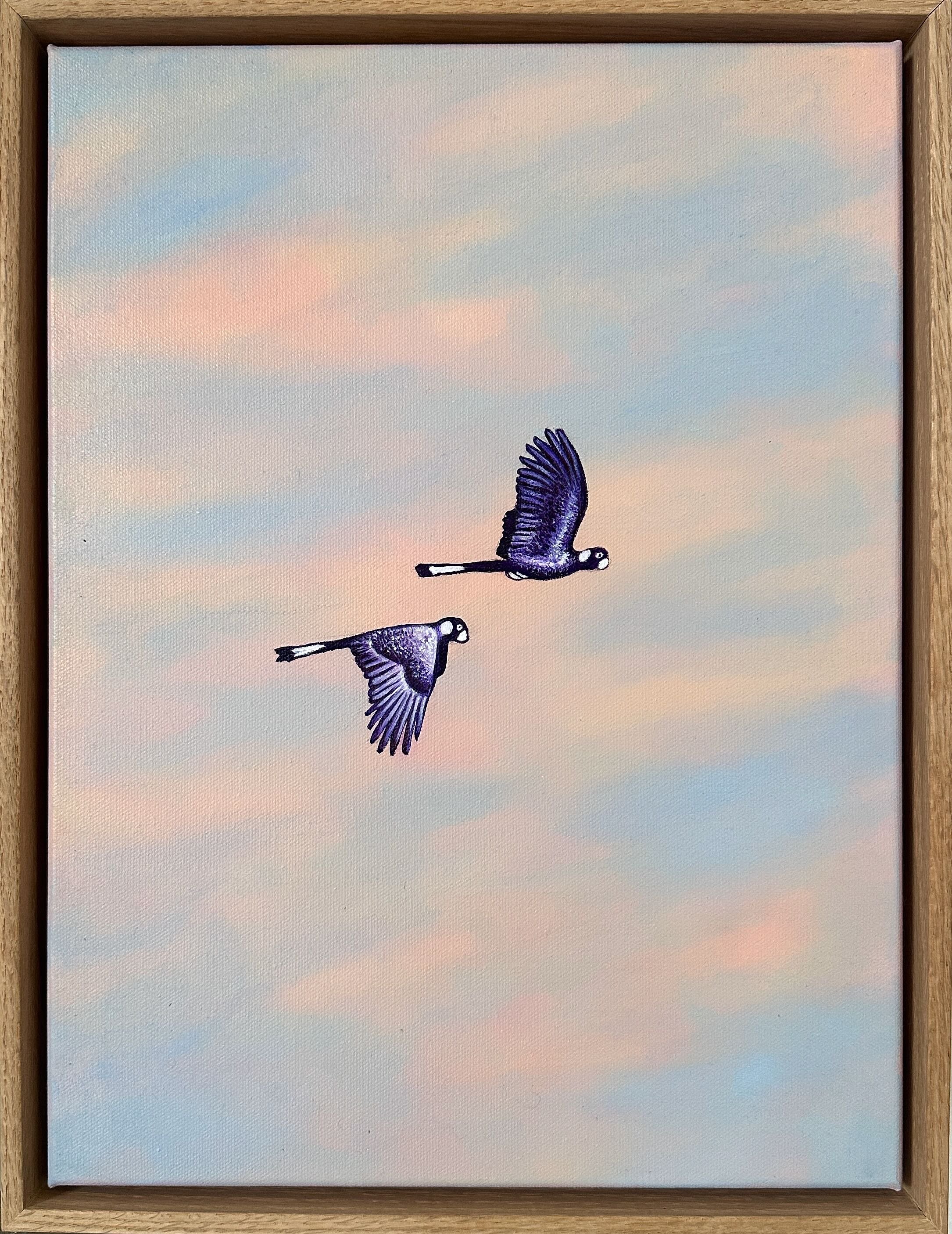 “My Cloud Sky With Black Cockatoo series of paintings have evolved from earlier Cloud Sky with bird paintings. In this most recent body of work, I’ve decided to focus in more on the majestic yellow tailed black cockatoos, making them the focal point in the otherwise ethereal sky. The background clouds are softly focused, almost appearing air brushed - although they are hand painted with layers of acrylic gesso glazed with oil paint.