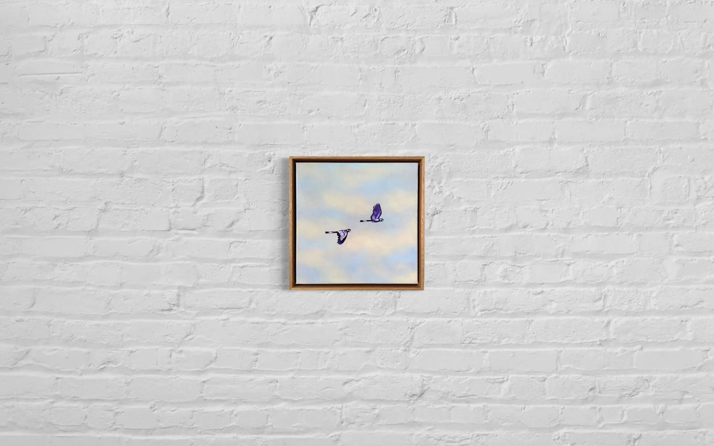 “My Cloud Sky With Black Cockatoo series of paintings have evolved from earlier Cloud Sky with bird paintings. In this most recent body of work, I’ve decided to focus in more on the majestic yellow tailed black cockatoos, making them the focal point in the otherwise ethereal sky. The background clouds are softly focused, almost appearing air brushed - although they are hand painted with layers of acrylic gesso glazed with oil paint.