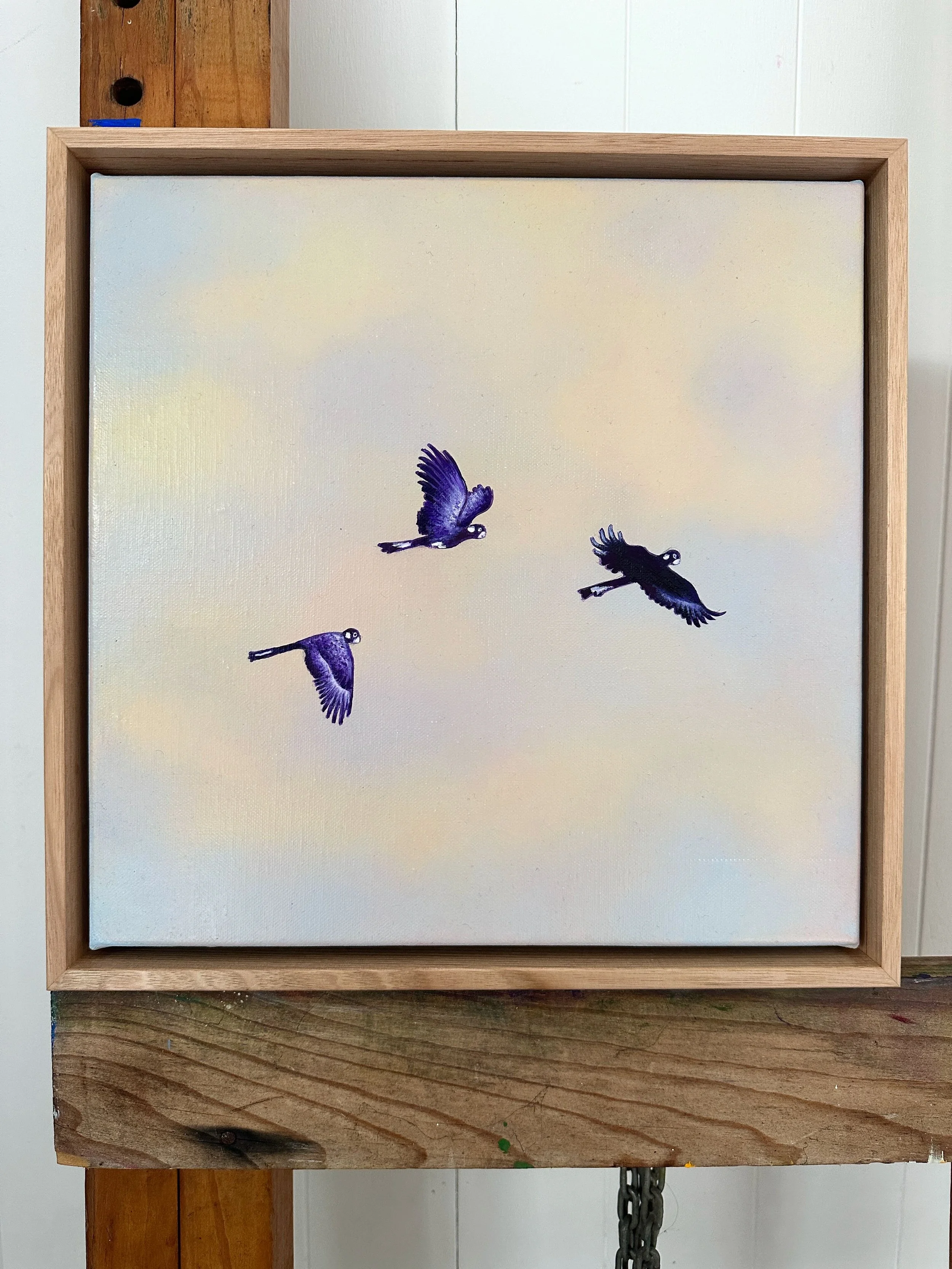 I love hearing and watching the black cockatoos fly above my studio and will always stop whatever I’m doing to watch them pass over, or land in the trees nearby. These majestic creatures have a timeless aura to them and it always feels special to see and hear them.