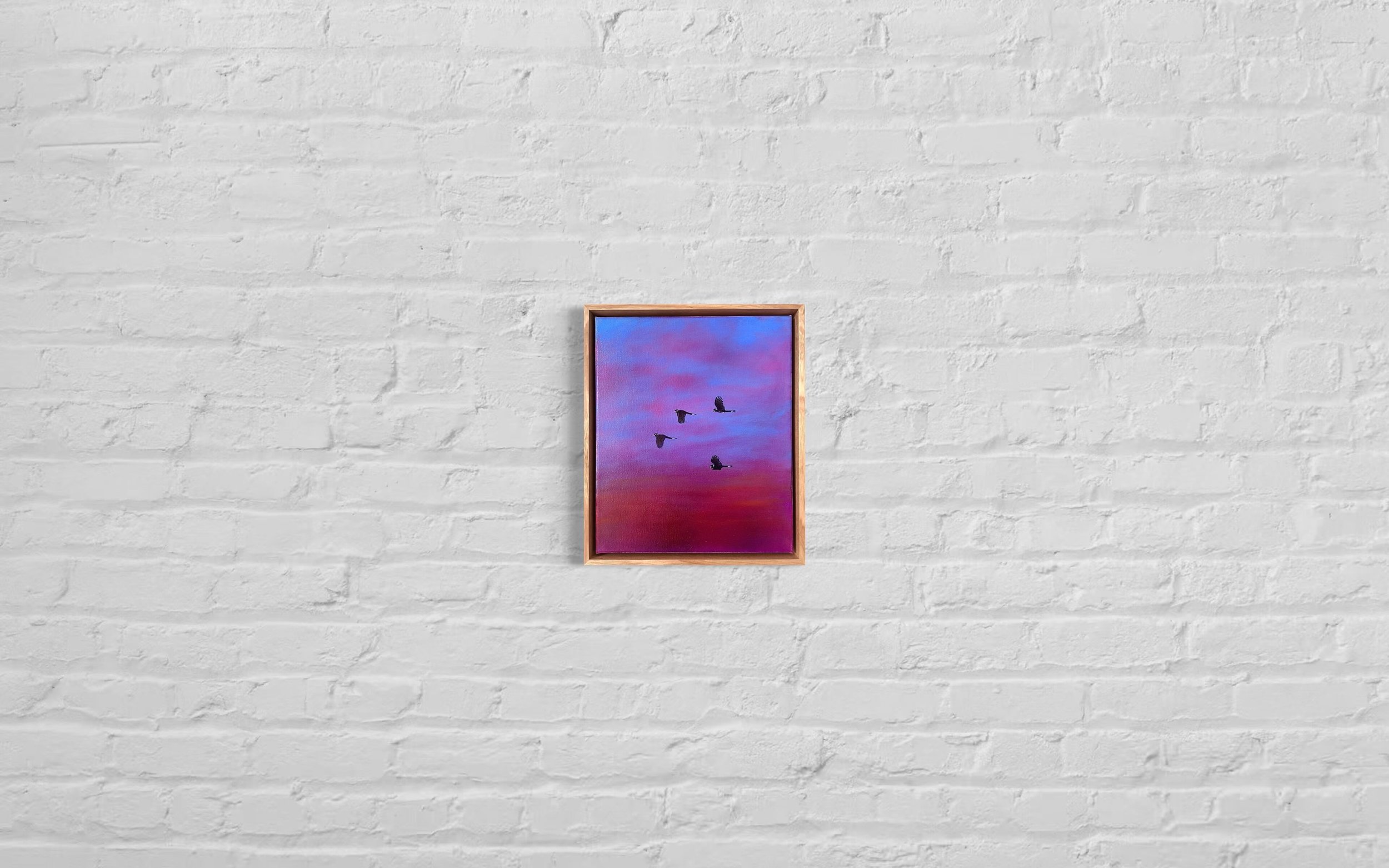 With a background in electronic and temporal art (BVA, Sydney College Of The Arts 1997 - 1999), Katoomba based artist Olivia Shimeld has found a way to give her paintings a uniquely digital aesthetic. Her ethereal abstract landscapes, vast sunsets with birds, night skies and floral assemblages flash with vibrant neon colours layered atop one another, creating a depth of space reminiscent of a digital screen. Olivia uses high quality acrylic, oil and aerosol paints which she intuitively allows to drip and splatter onto her canvas. At once meditative and energetic, Olivia’s work asks for contemplation as it blurs material boundaries.
