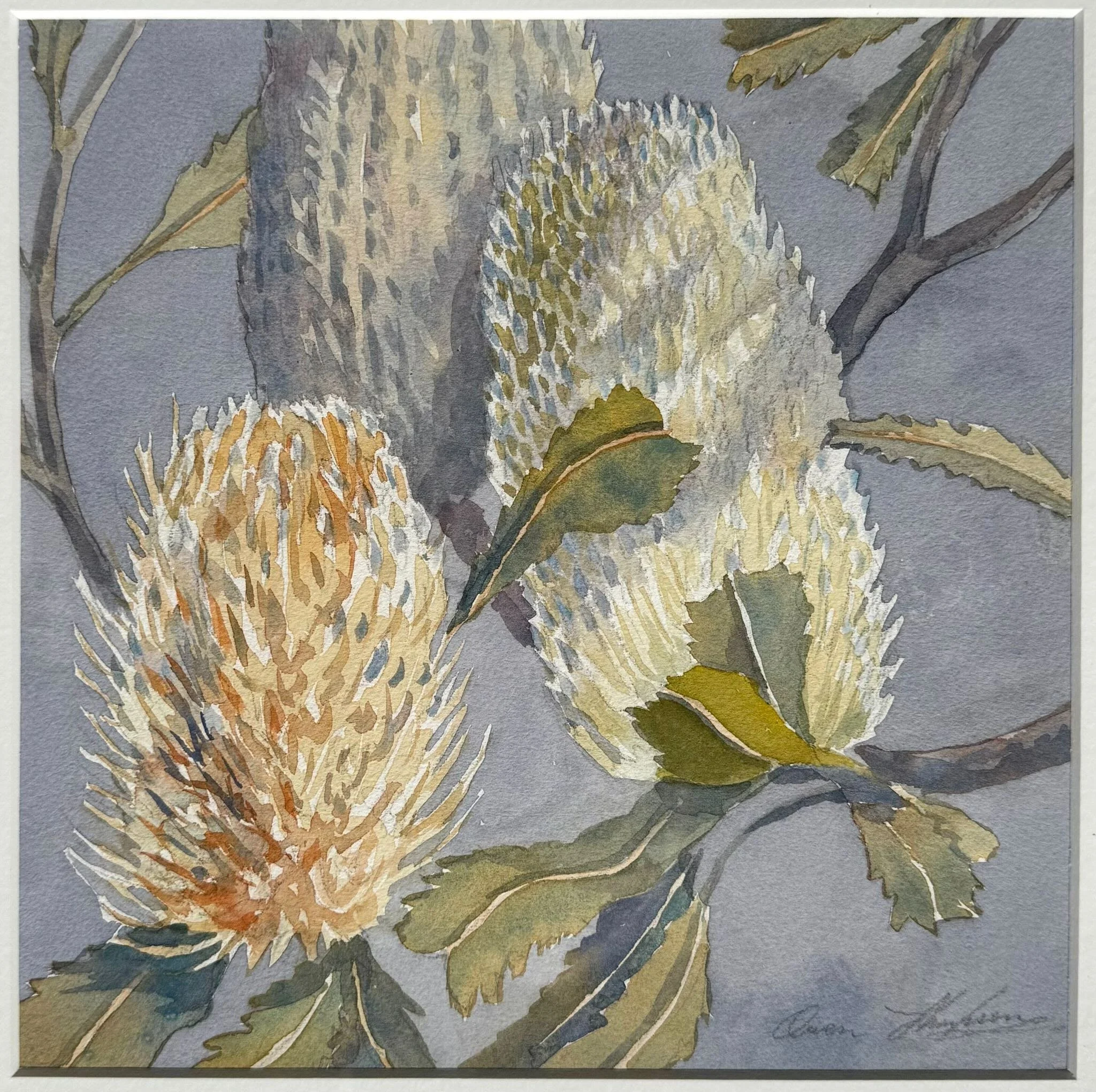 Owen Thompson holds a Bachelor of Fine Arts, having majored in painting and printmaking at the College of Fine Arts, University of New South Wales, and the Adelaide Art School. He taught art at the secondary level at Roseville College, has tutored in watercolour at the University of New South Wales and Klaus Von Bruch (KVB) College and currently teaches painting and drawing at Julian Ashton Art School, Sydney. He has held twenty-five solo exhibitions, variously based on botanical, water and landscape themes, which have reflected his passionate interest in the natural world and in addressing complex subjects in watercolour. Among his most recent one-person exhibitions are Observations: Seaside and Mountain Top, Braemar Gallery, Springwood, NSW (2017), and Nature’s Table, Day Fine Art Gallery, Blackheath, NSW (2018). One of his favoured subjects is the sublime landscape of the Blue Mountains, where he now lives, with their austere beauty, multifarious structures and unique local light. In his work, Thompson acknowledges the influence of Australia’s early romantic landscape painters, such as Conrad Martens, John Glover, Eugene von Guerard and William Piquenit. Thompson was commissioned to produce works for the new wing of Nepean Hospital, including watercolours for three birthing units in 1999, a large acrylic mural for the cardiac rehabilitation unit in 2008 and a set of four watercolours, which were digitally enlarged and laminated into glass panels for the windows of the new chapel, in 2011. His watercolour, Bridal Veil Falls, Blackheath, NSW, was selected as a finalist in the 2012 Hawkesbury Art Prize. His work is represented in the collections of the University of New South Wales, Adelaide College of Arts, Lane Cove Council, Artbank and Nepean Hospital. A member of the Australian Watercolour Institute since 1996, Owen Thompson was also a member of Royal Art Society of New South Wales from 2000 until 2010.