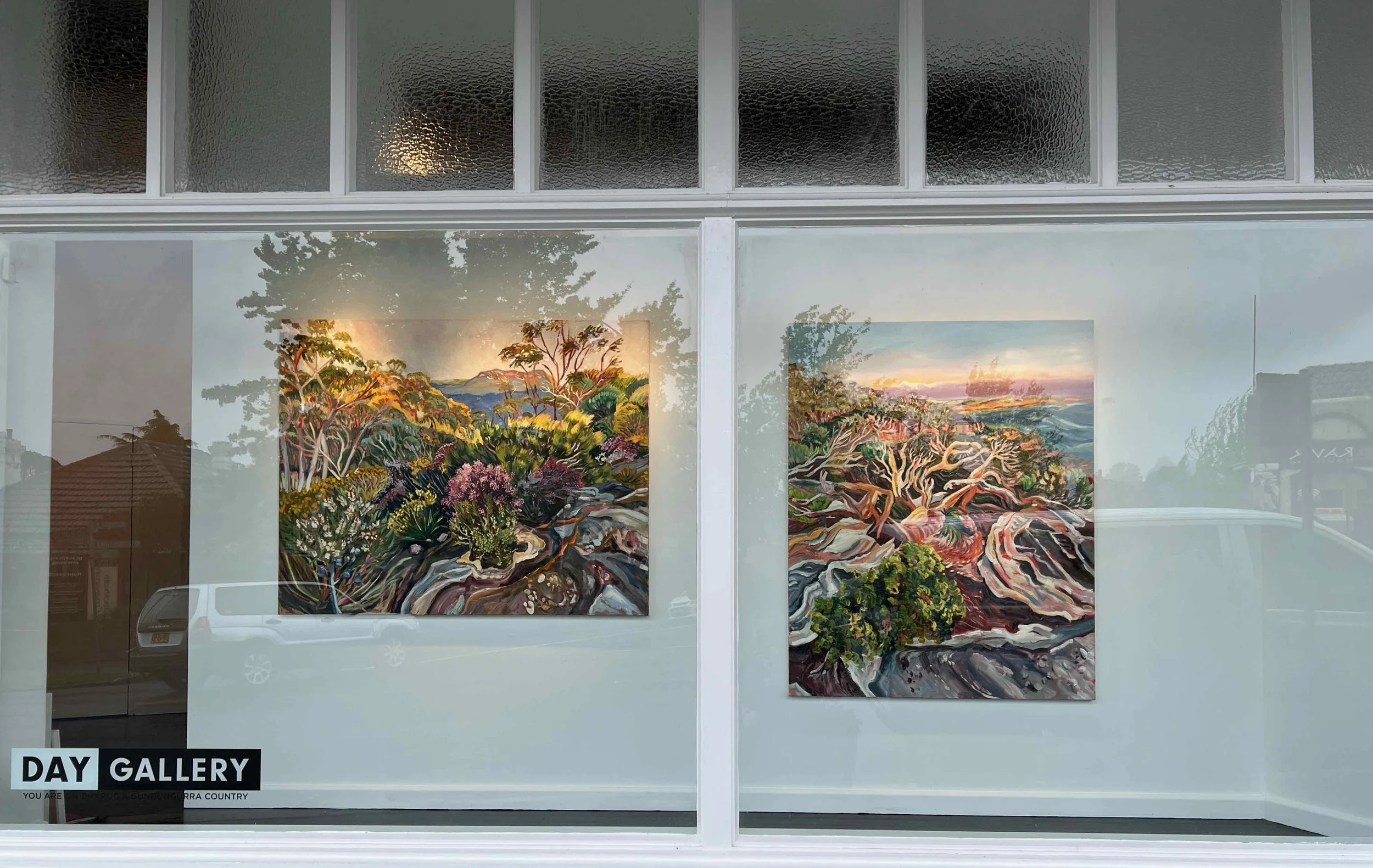 Music and art are inseparable for me. Having been a professional singer for over 30 years, music imbues everything I do. In the landscape and in my paintings, I hear melodies in the unpredictability of forms, colour and movement. I feel the rhythms of the repetition and patterns in the natural architecture and the never ending abundance of different flora, water, clouds and surfaces. I bring the visual into my improvising when I sing, and similarly the music flows through my brush when I apply my marks.
