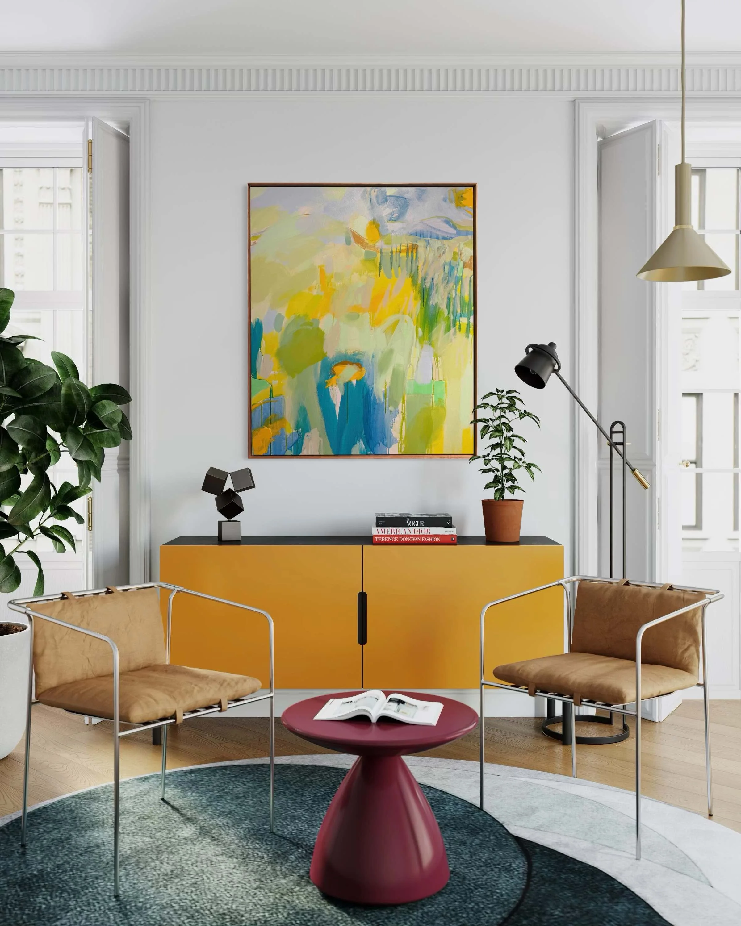 Color holds a special place in Ruth's artistic palette, serving as a conduit to convey the wonders of her visual world to the viewer. Trusting her intuition, Ruth approaches each canvas with an open mind, allowing the painting to reveal itself organically. The process of creation is a fluid dance of paint, layers, textures, and lines, resulting in truly unique compositions that bear the imprint of her internal journey.