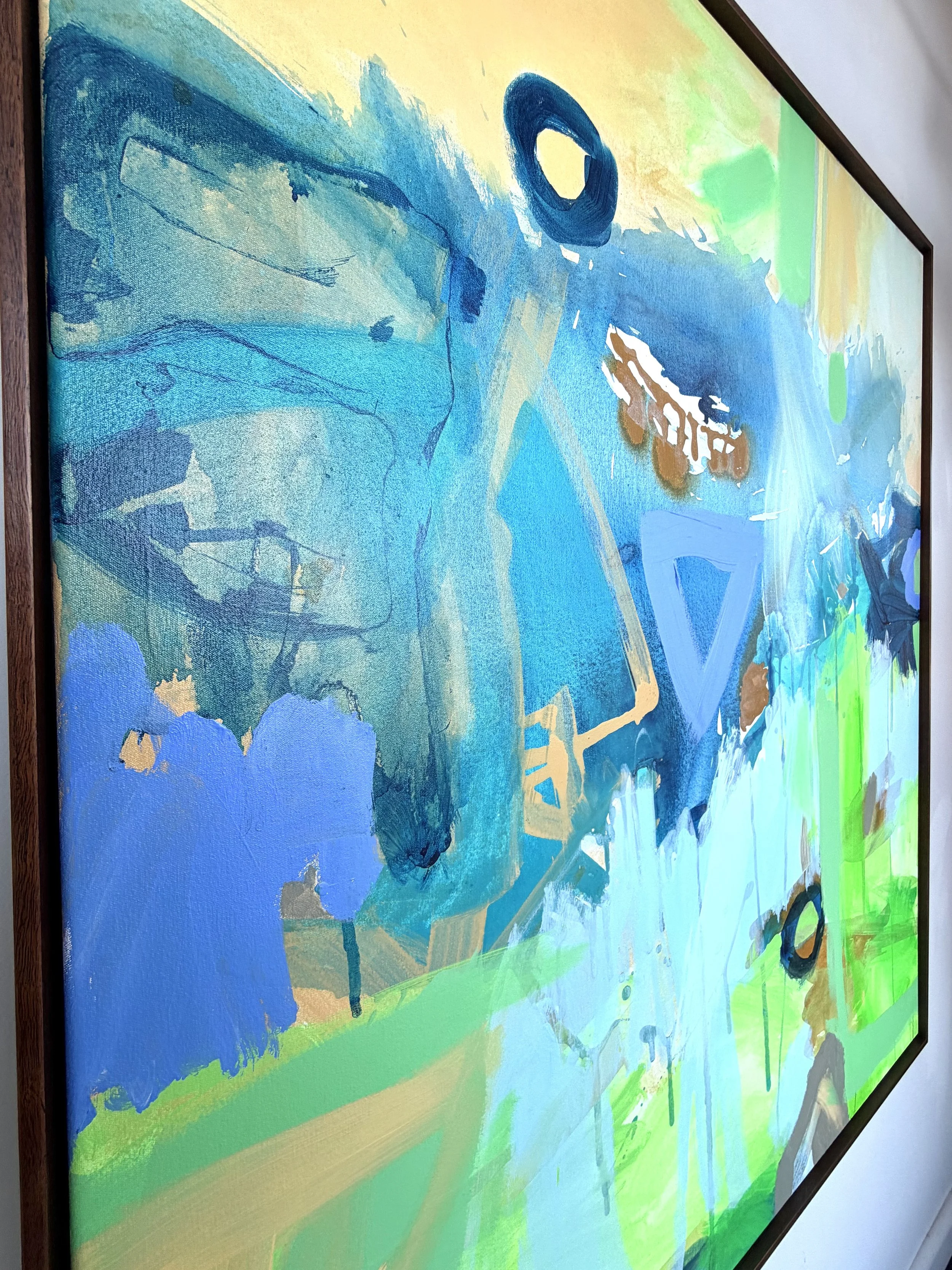 Color holds a special place in Ruth's artistic palette, serving as a conduit to convey the wonders of her visual world to the viewer. Trusting her intuition, Ruth approaches each canvas with an open mind, allowing the painting to reveal itself organically. The process of creation is a fluid dance of paint, layers, textures, and lines, resulting in truly unique compositions that bear the imprint of her internal journey.