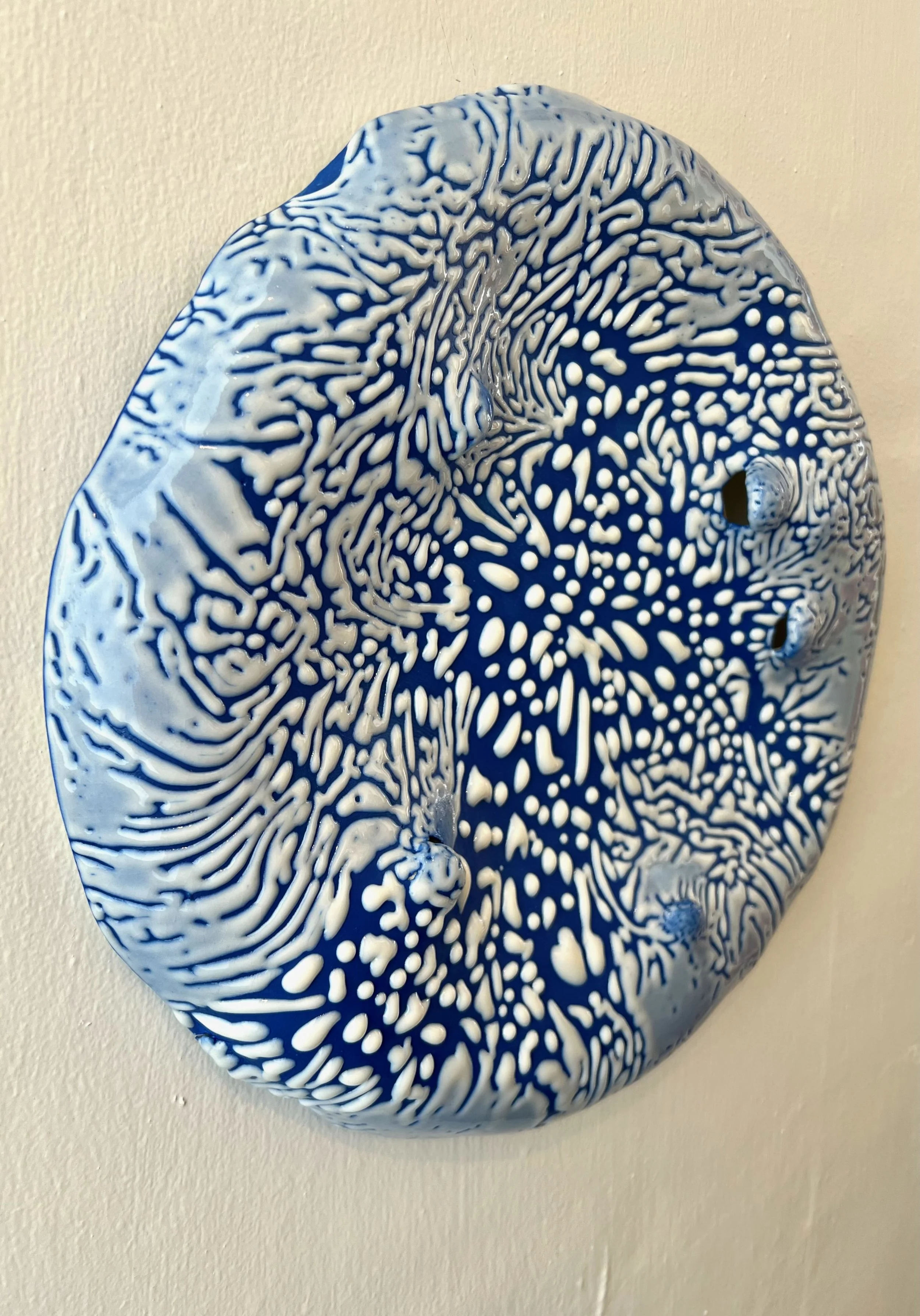These ceramic pieces are made by manipulating the surface, pushing out and infiltrating, almost invading the space.