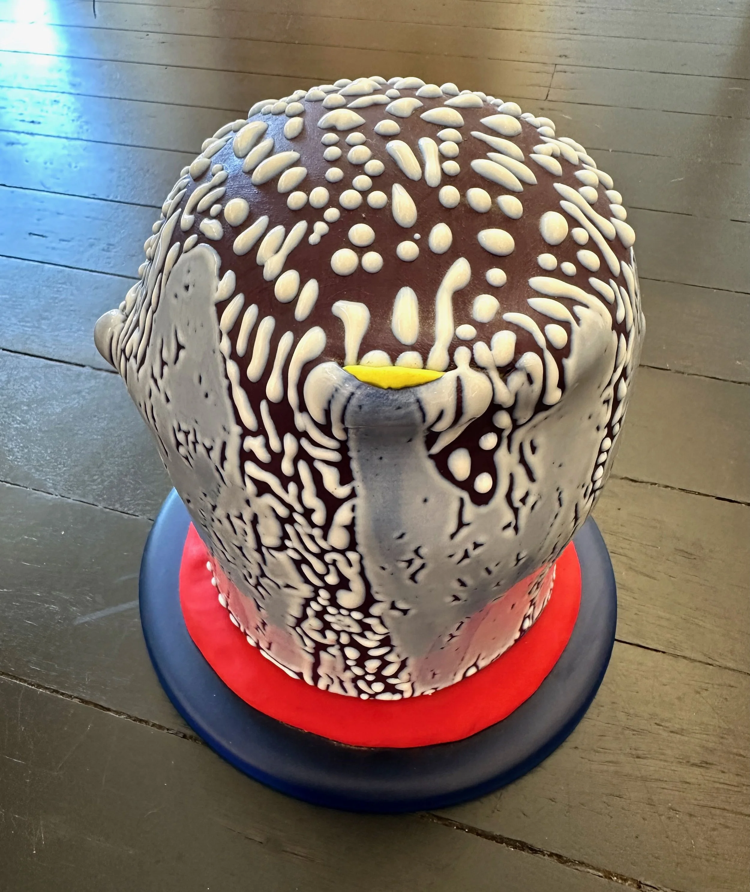 This body of work includes ceramic and mixed media sculptural objects. The large jellyfish bloom on the wall is indicative of the collapse of oceanic ecosystems as a result of rubbish in the food chain. Our climate inaction is creating something bigger, in this case large blooms of jellyfish are appearing in our oceans, highlighting the detrimental warming of the oceans and the effect on ecosystems.